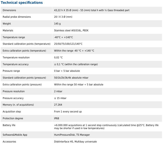 ► Extremely high accuracy and precision for temperature and pressure: with an accuracy of ± 0,1°C these devices can be employed in any application involving pharmaceuticals, validation, laboratory and medical field
