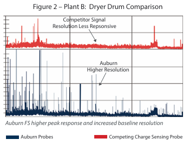Plant B는 장기 신뢰성 검증을 요구하였으며, 기존에 광학식 장비를 테스트한 후 부적합 판정을 내린 경험이 있었습니다. 이에 따라 Auburn 분진 모니터링 센서를 도입하여 기존 전하 감지 시스템과 1년 이상 비교 운전을 수행하였습니다.