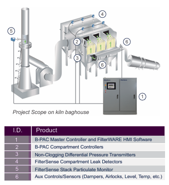 이를 위해 세 개의 Auburn B-PAC™(Baghouse Performance Analyzer & Controller)을 도입하였으며, 다양한 공정 센서, 통합 분진 모니터, 보조 제어 장치를 함께 구성하였습니다.