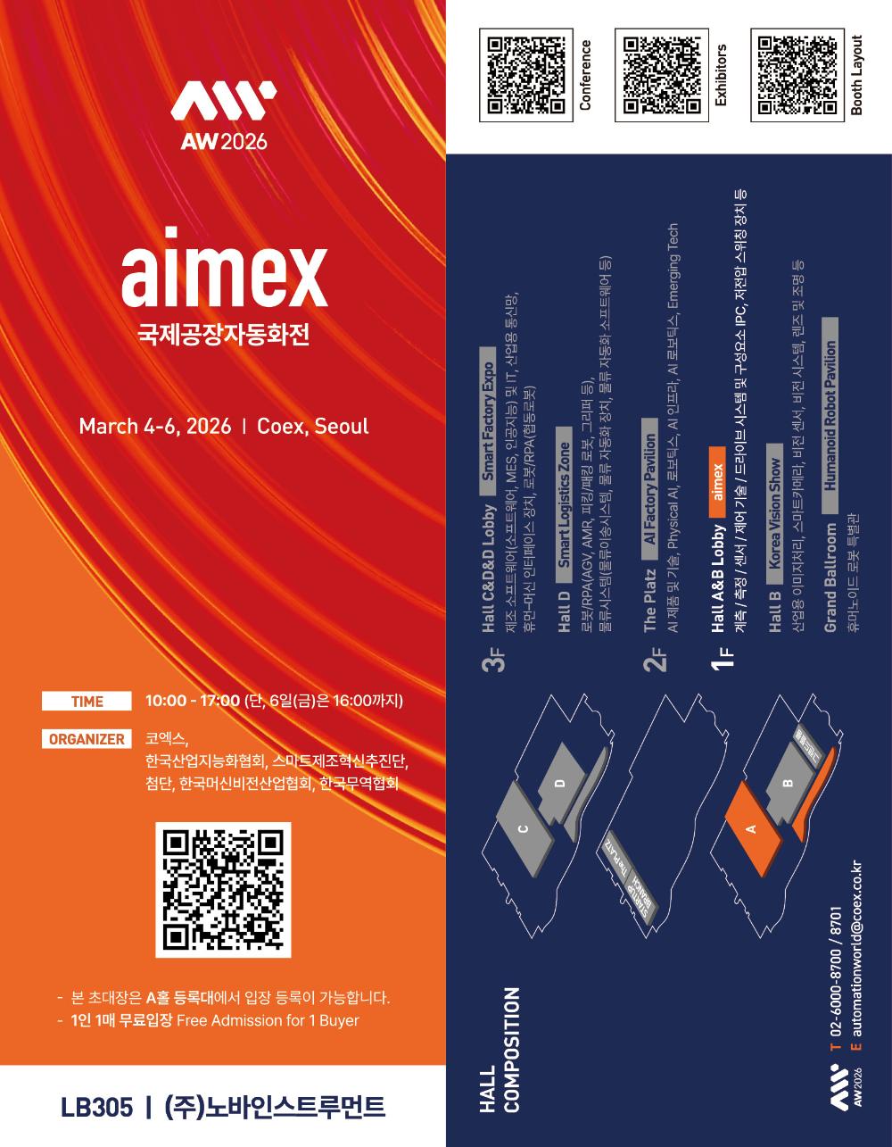 2026년 3월 4일(수) 부터 3월 6일(금)까지 코엑스에서 열리는 국제공장자동화전 aimex AW 2026에 여러분을 초대합니다.