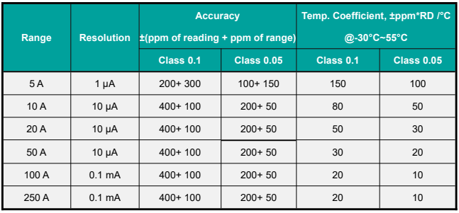 - Measurement range: 0.5 A ~ 250A(CCS1, 2 or others), 300A(GB/T).