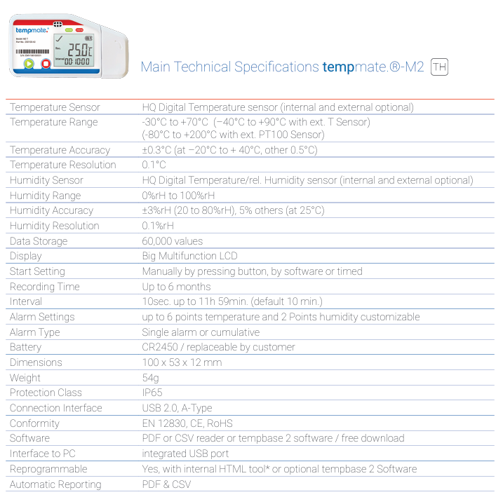 온습도 데이터로거 (다회용) 모델명: Tempmate M2 TH