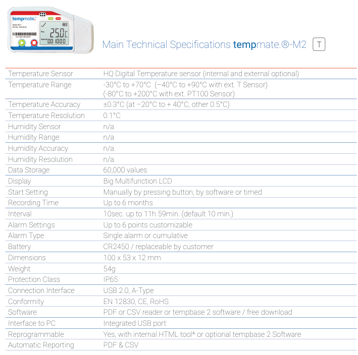 온도 데이터로거 (다회용) 모델명: Tempmate M2 T