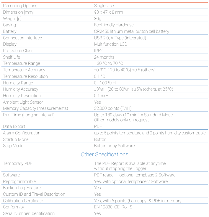 일회용 온습도 데이터로거 모델명: Tempmate S2 TH