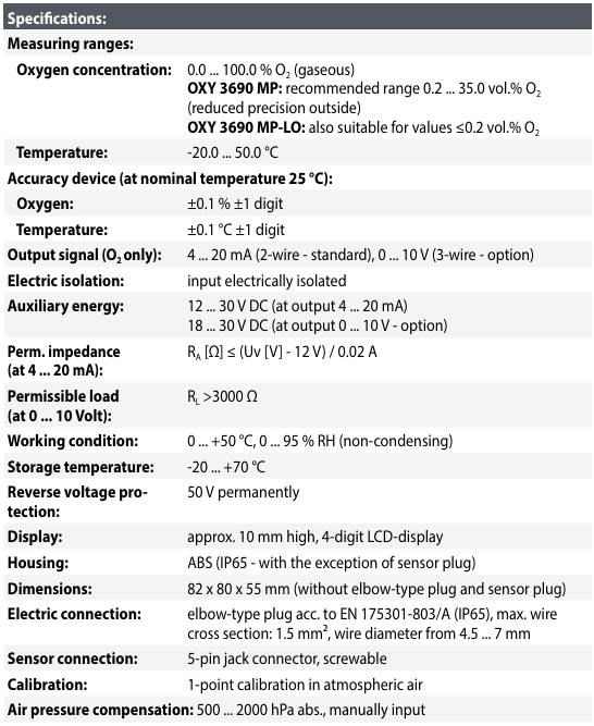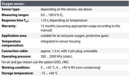 ▶ 산소 센서: 센서 소자: 교환 가능, 높은 CO2 농도에 적합