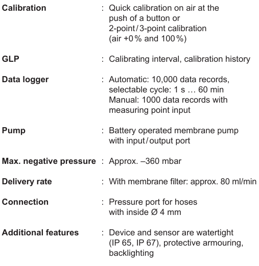 ▶ 측정 범위 O2 : 0.0 ... 100.0 % vol. O2 또는 hPa로 표시 O2 / mmHg O2