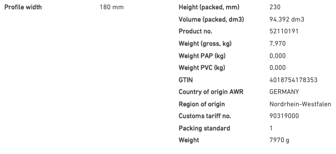 | Product no. | Model | Length mm (L) | Width mm (b) | Height mm (h) | Range N·m | Functional length (LF) max. mm | for model | Weight (g) | Profile width |