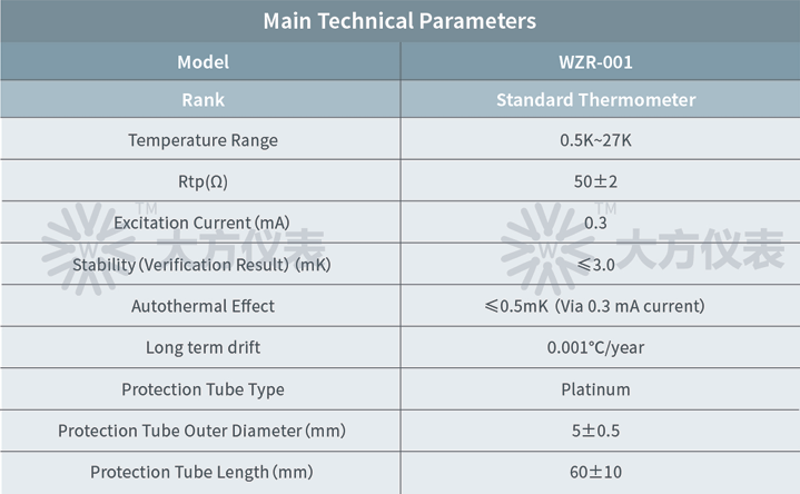▶ The standard rhodium resistance thermometer is perfect for the temperature of 0.5K~87K.