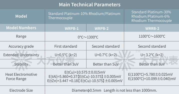 ▶ There are two types of standard platinum rhodium 10% platinum thermocouple and standard platinum rhodium 30% platinum rhodium 6% thermocouple.