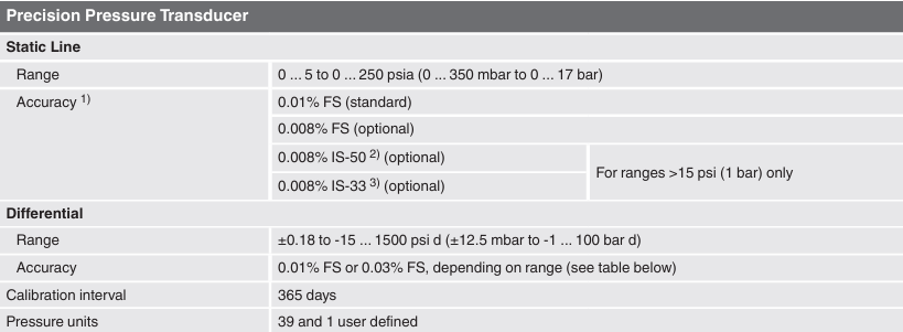 This transducer can be configured with customizable combinations of static line ranges and differential ranges to fit your specific application. With a recalibration time of 365 days and a high resolution of 8 significant figures, the CPT9000 is flexible enough to be used in a wide variety of applications.