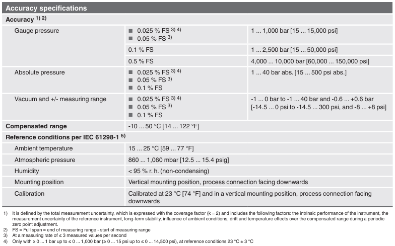 CPG1500는 스팬의 0.1 % 의 정확도(옵션: 0.05 % FS 또는 0.025 % FS)를 제공하고