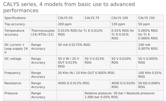 CALYS 150 field documenting multifunction calibrator is the top instrument of the range. It is the perfect tool for advanced process maintenance and use on test bench in all industries. Suitable for all field and lab measurements, it can simultaneously measure and generate over two isolated channels various signals of temperature, resistance, process, pressure and frequency in one single instrument. CALYS 150 does not only work as a simulator (IN / OUT) but also as a dual channel thermometer (IN / IN) to perform comparison calibration. It calibrates HART transmitters (HART communicator integrated into ACL500 modem) and thermistors. Providing extended functionalities (temperature simulation, scaling, steps, synthesizer, statistical functions…) and audit trails, CALYS 150 complies with both 21 CFR Part 11 and NADCAP Heat Treatment standards and makes advanced data exploitation and full data traceability easier